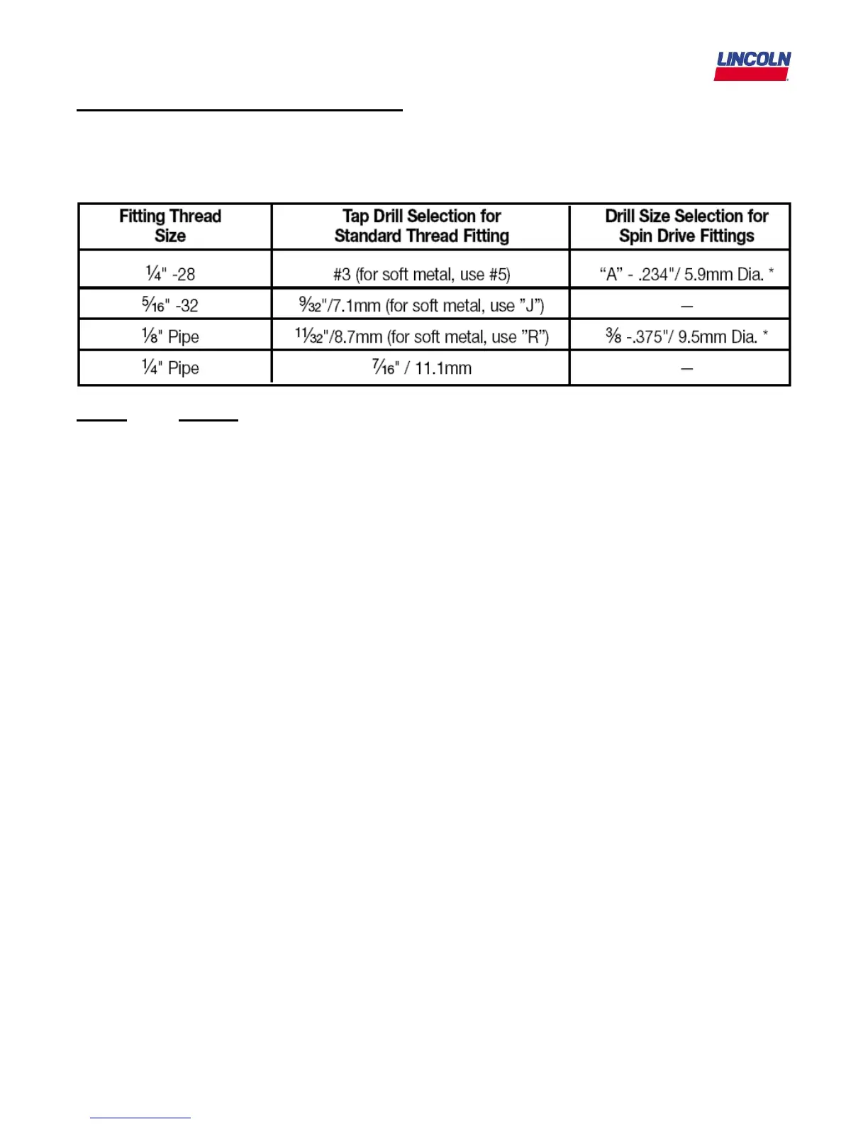 It is sometimes necessary to re-tap a lubrication port due to port damage or drive type fitting removal.