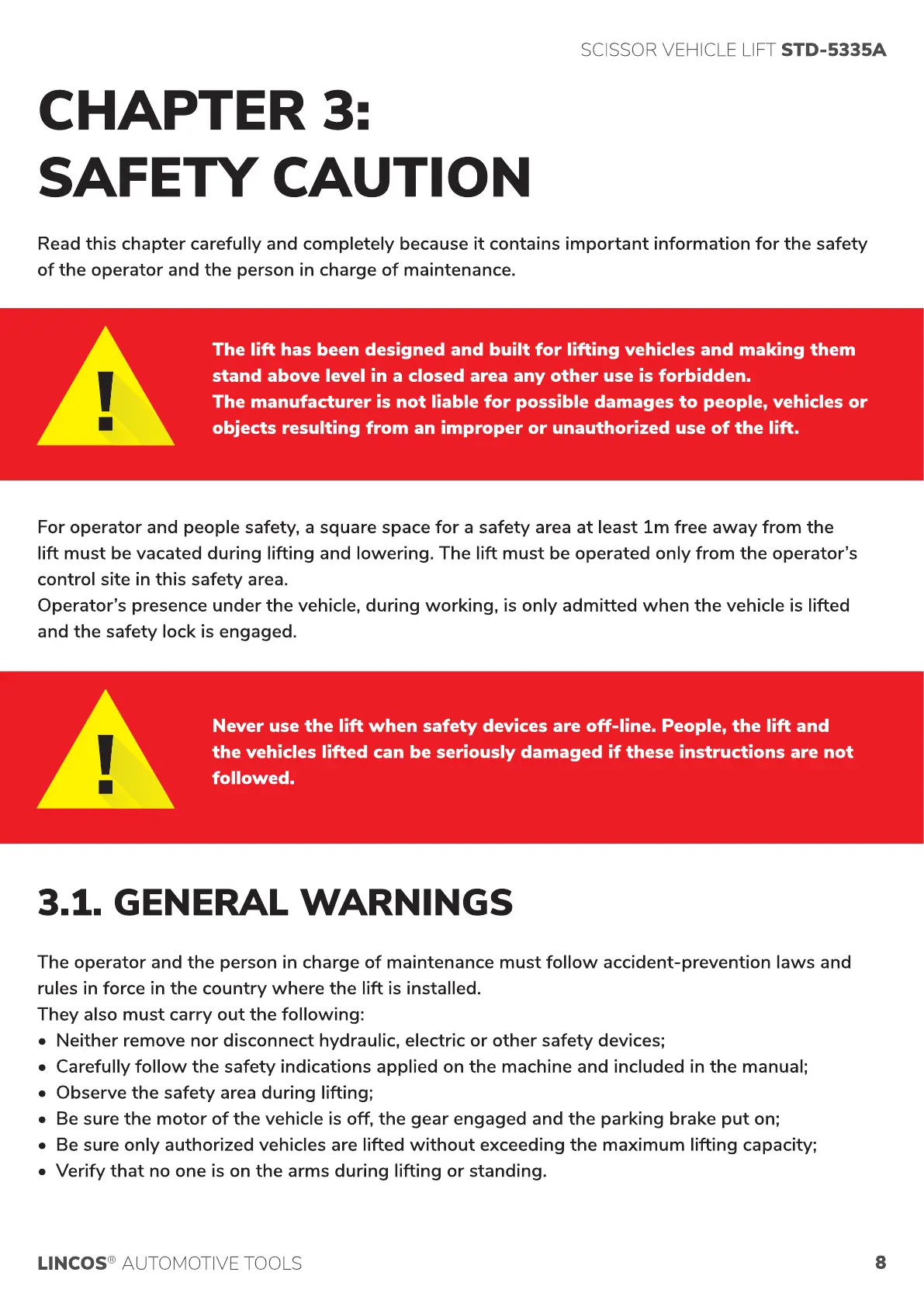 LINCOS STD-5335A - Chapter 3: Safety Caution