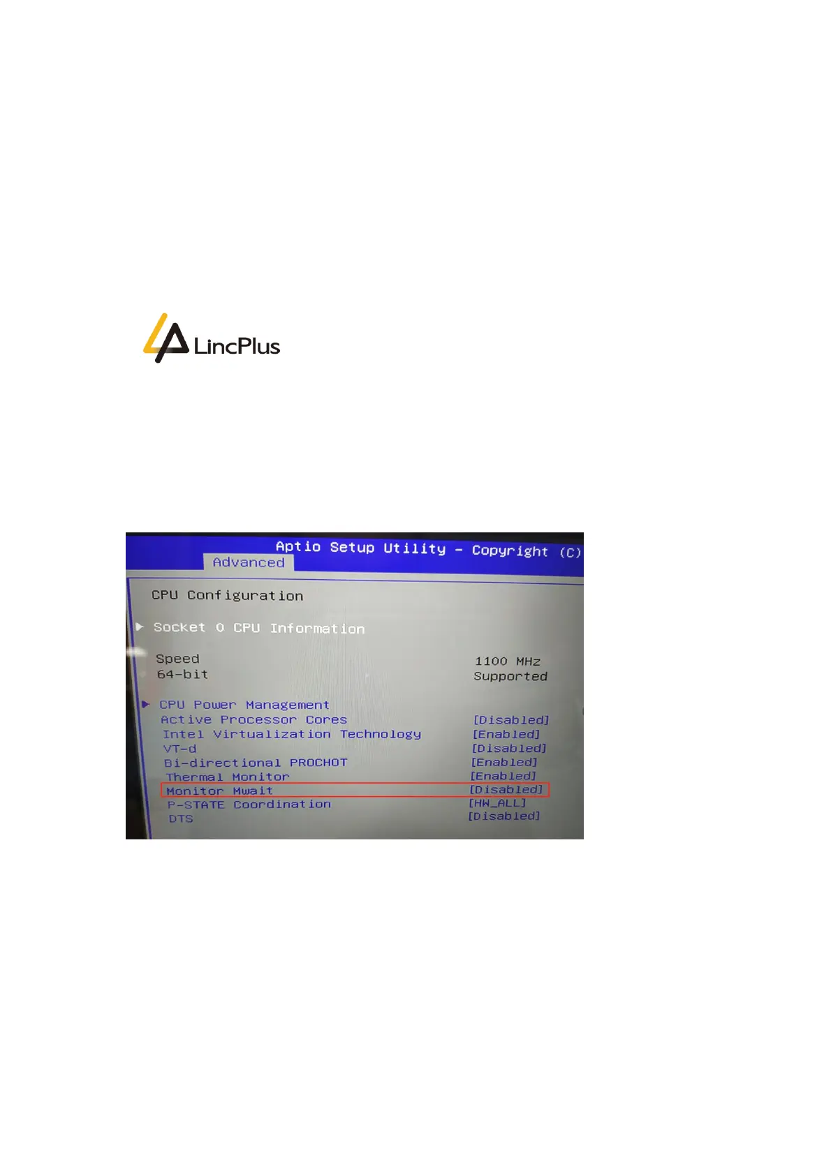 2. set "Advanced->CPU Configuration->Monitor Mwait" to "Disabled";