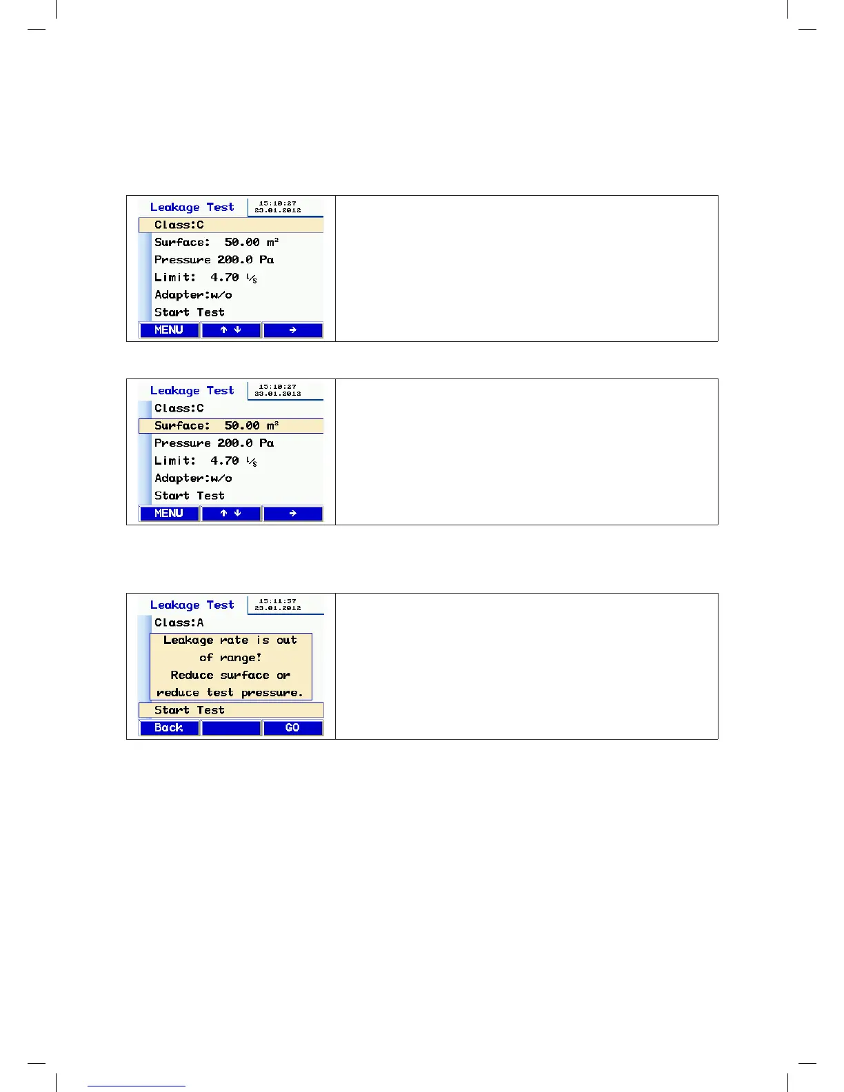 "Leakage flow rate too high. Reduce the surface area or the test pressure."