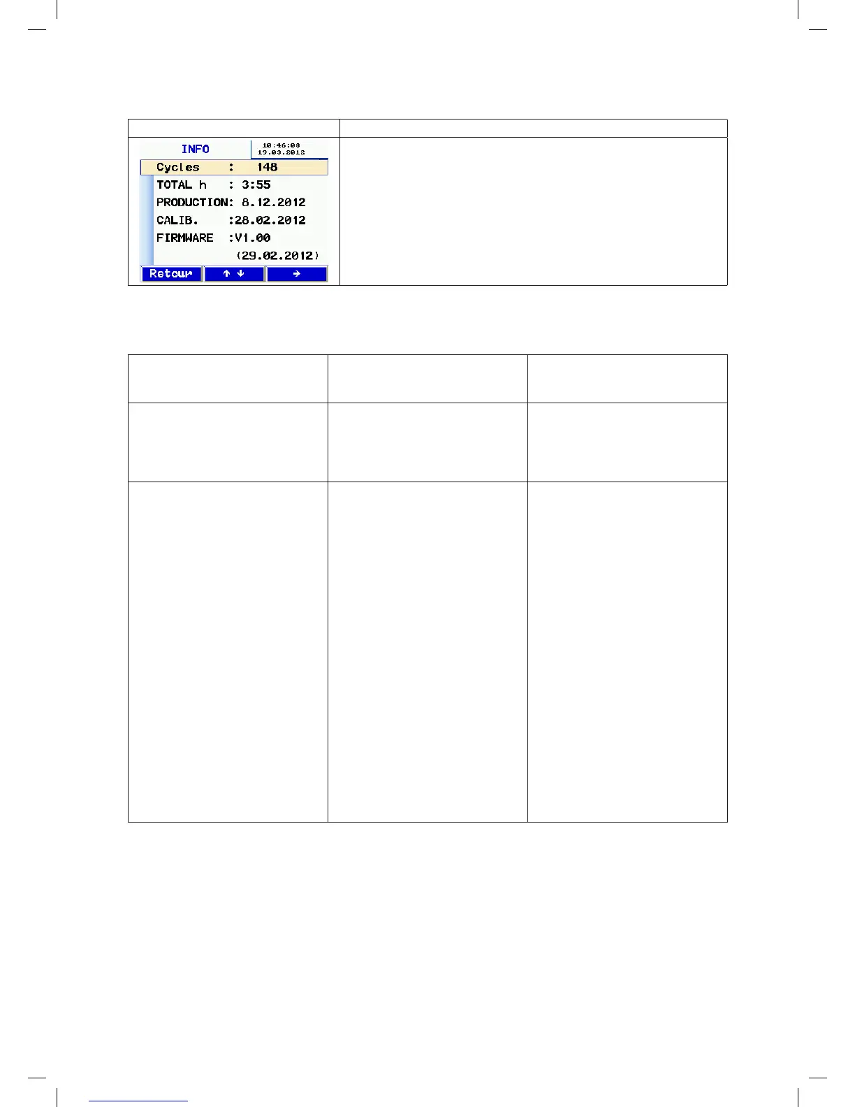 • Données de l'appareil pour maintenance.