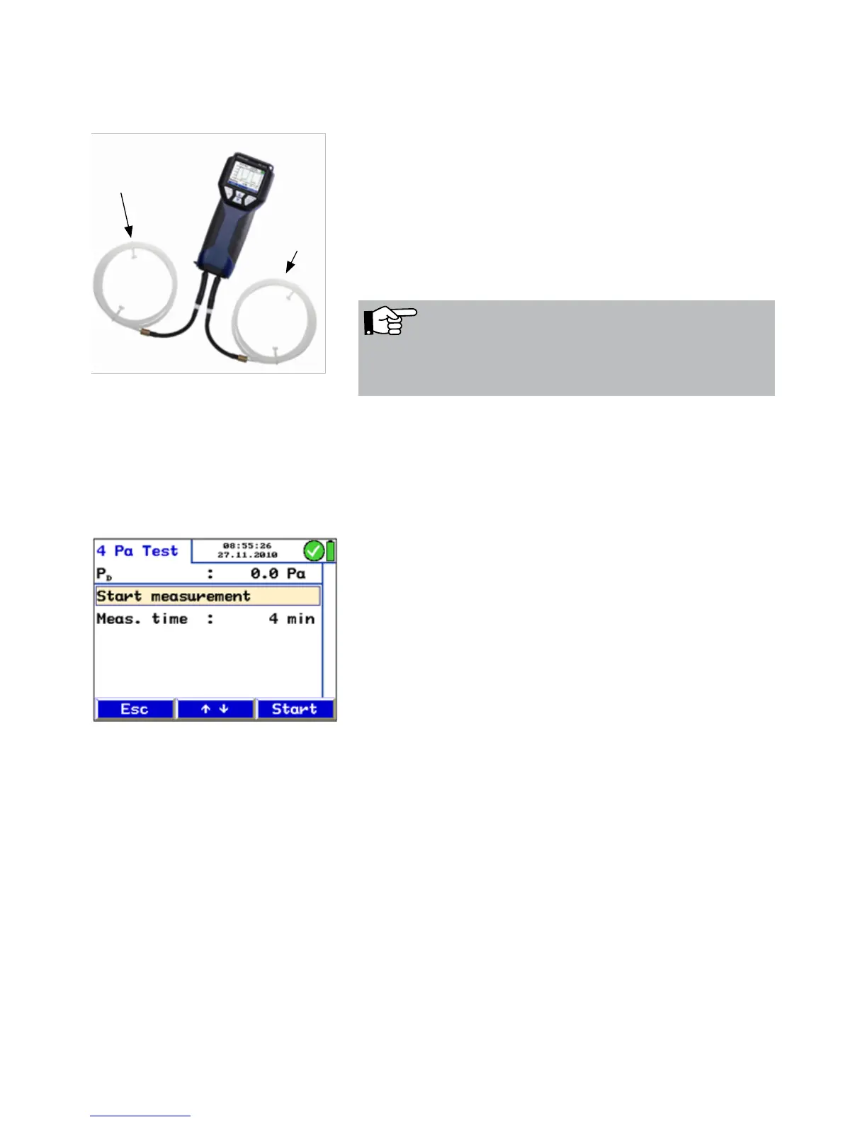1. Select 4 Pa Test in the main menu of the PC 410. The