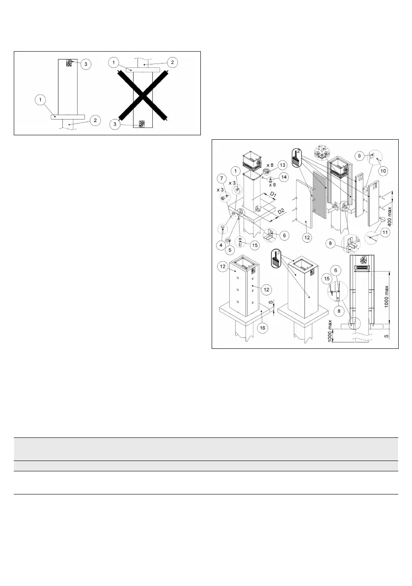A opening must be provided in the wall as indicated in the table and