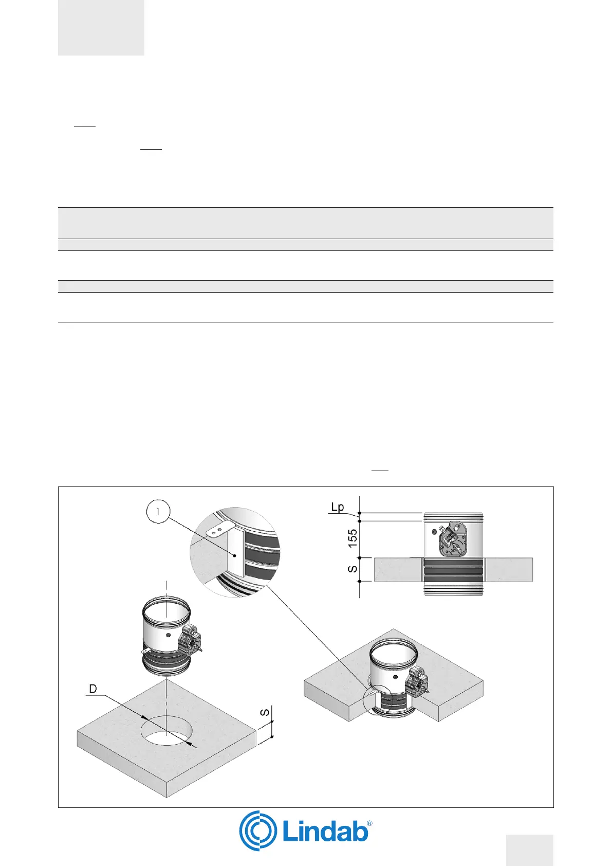 Lp Overlap length between re damper and duct: see section