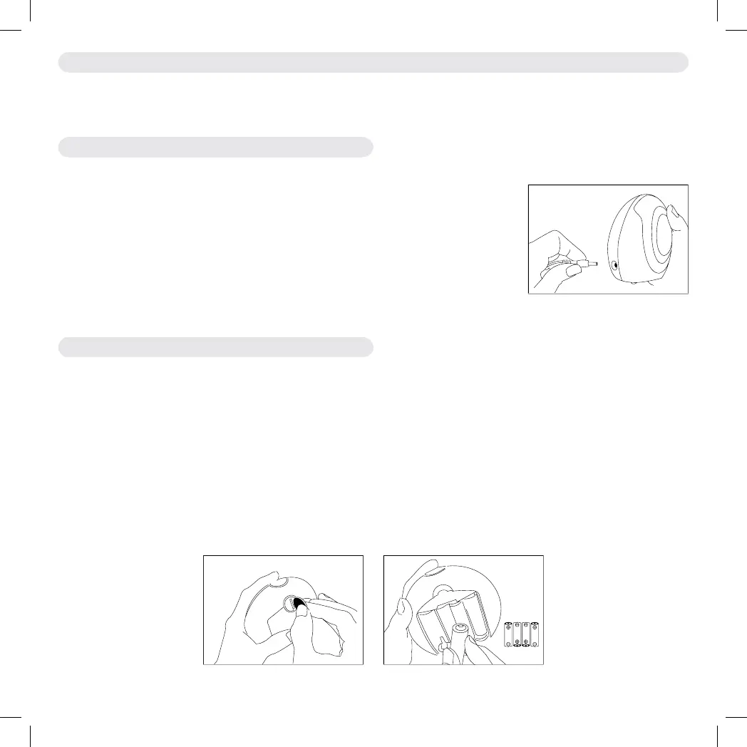 You can power your Baby Unit using either the Mains Power Adapter supplied or 4 x AA Standard Alkaline Batteries