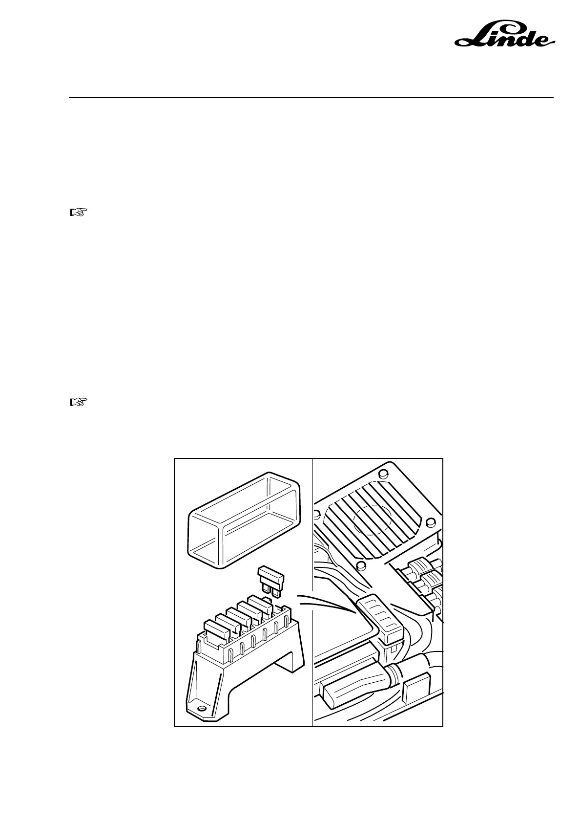 MUST NOT be used. Only genuine Linde fuses have sufficient voltage capability to ensure cor-