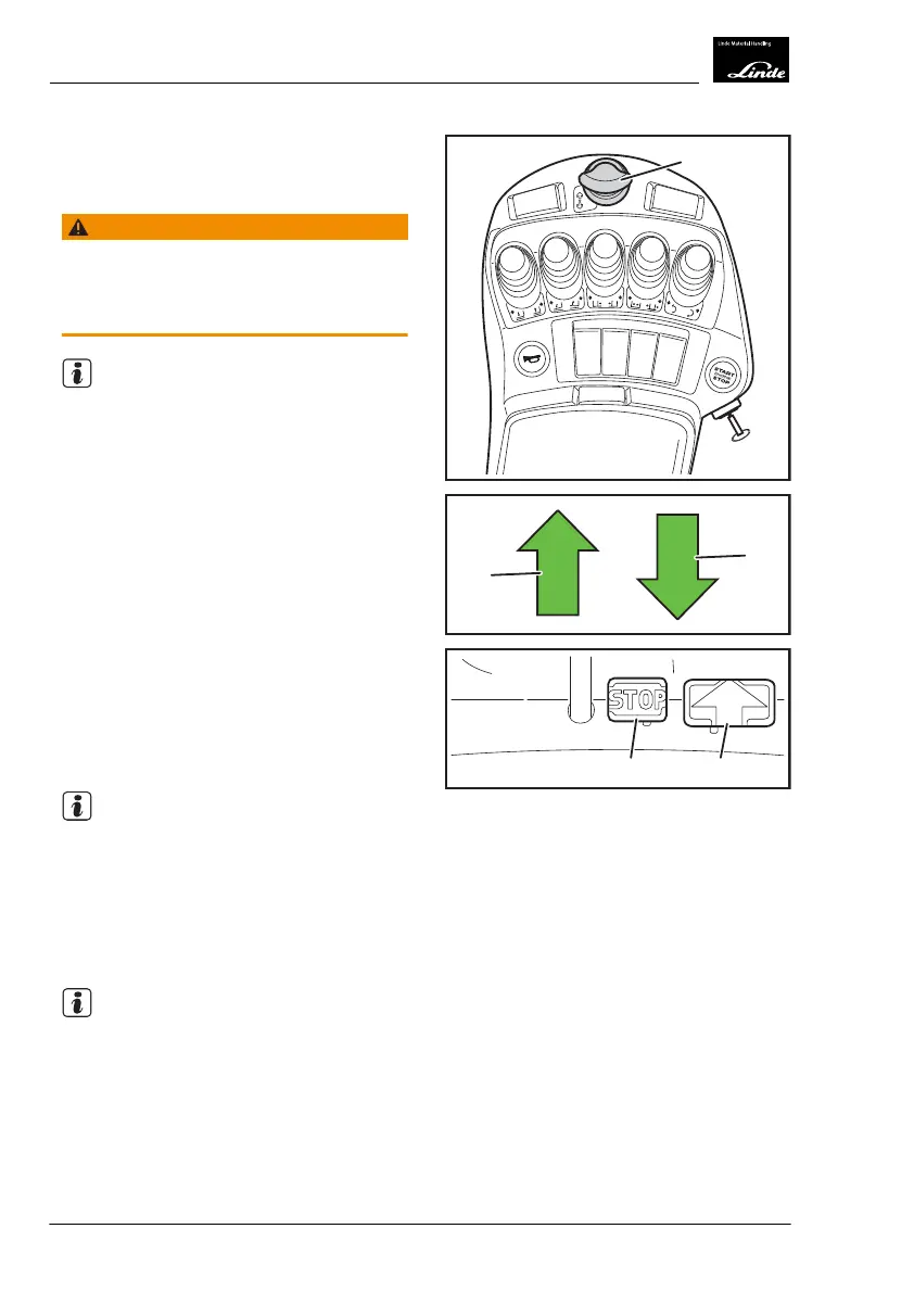 Carefully press drive pedal (3). Truck speed