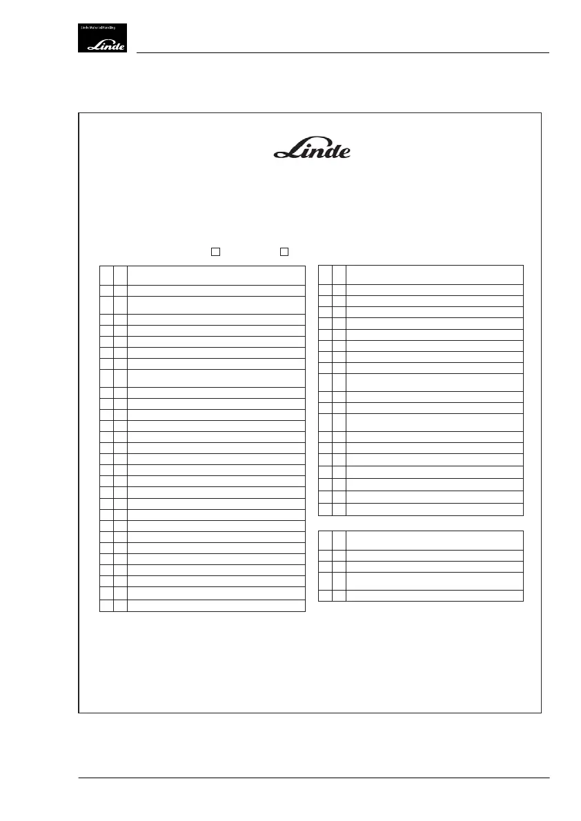 of any problem. Start at the left rear of the lift truck and work towards the front, and then the right side. After checking, mark