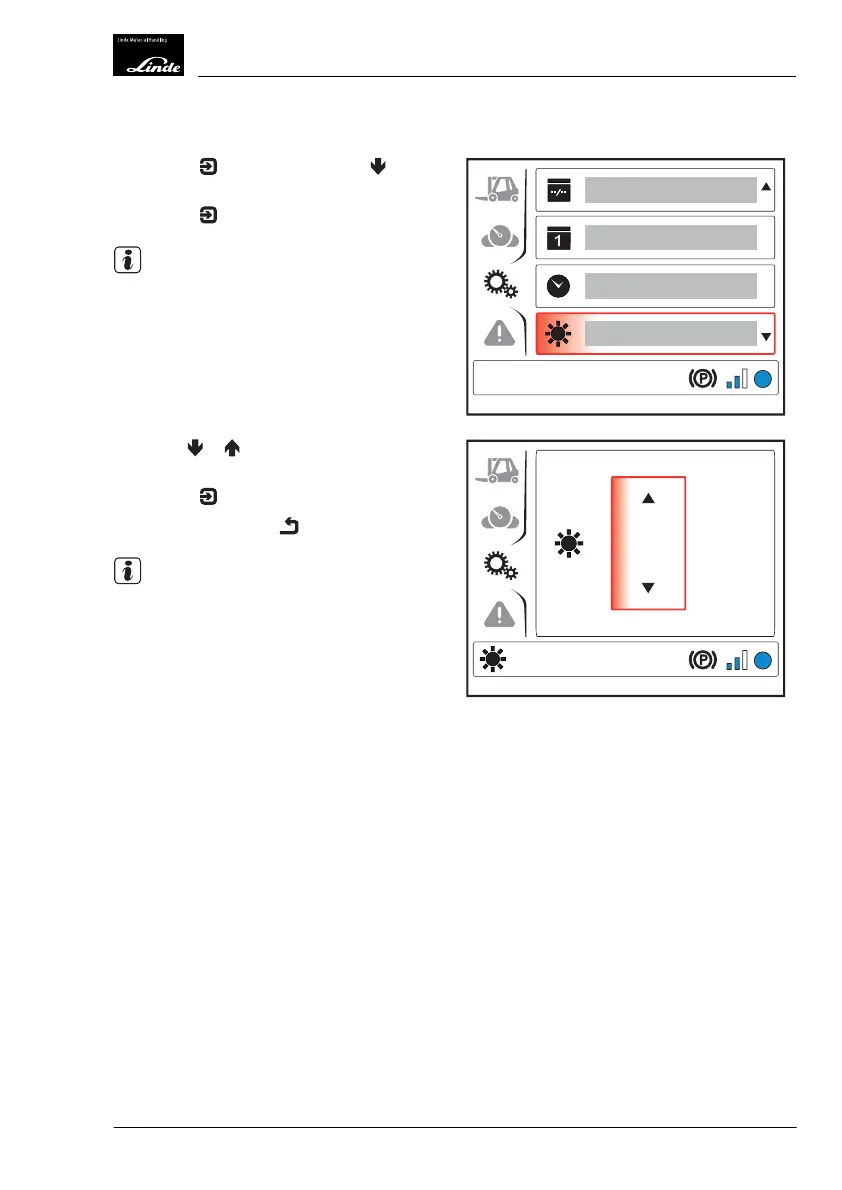 ton to select the "Brightness" (1) menu item.