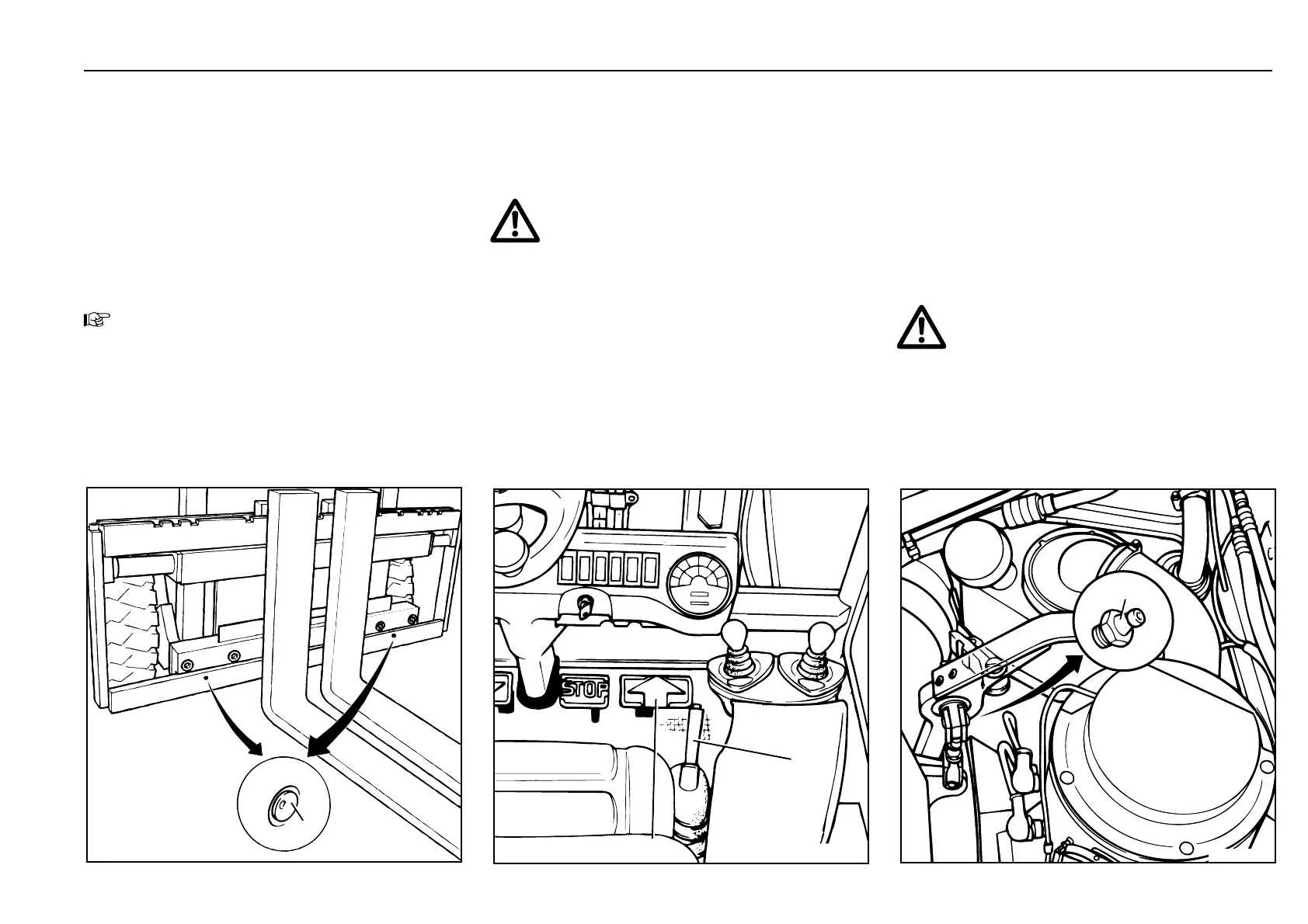 - Lubricate the fork carriage grease nipples (1) with lubricat-