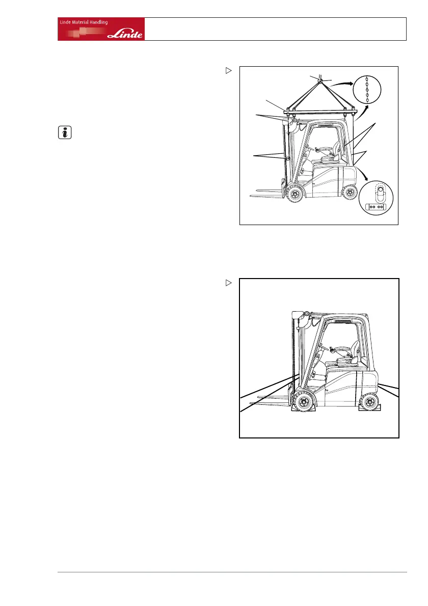 min. 3000 kg) in crane eyes (1) on lift mast.