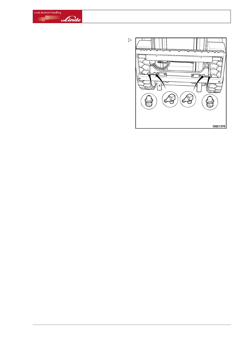 ¾ Lubricate the grease nipples (1) for the slide