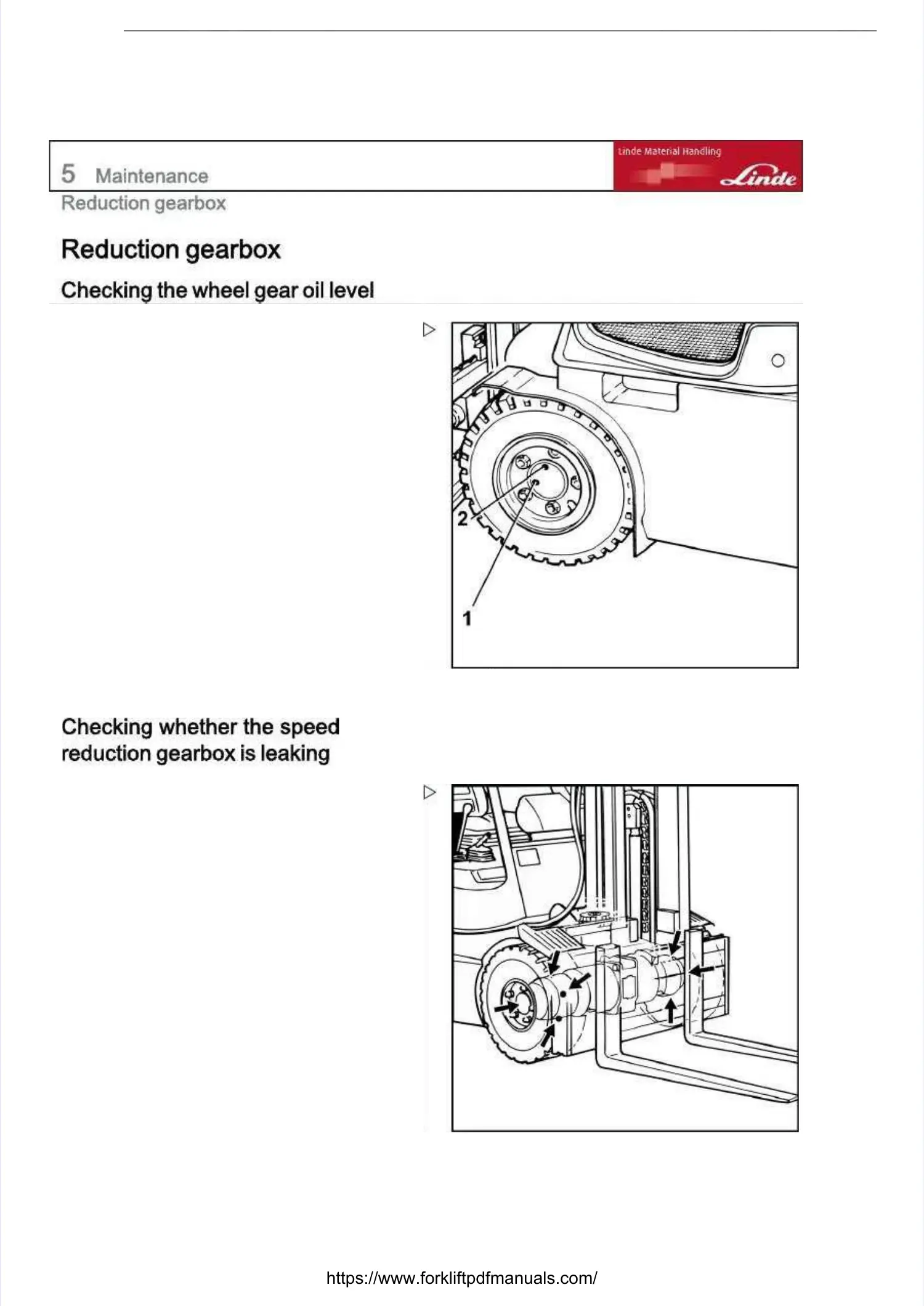 Screw the oil level plug (1) back in, andScrew the oil level plug (1) back in, and