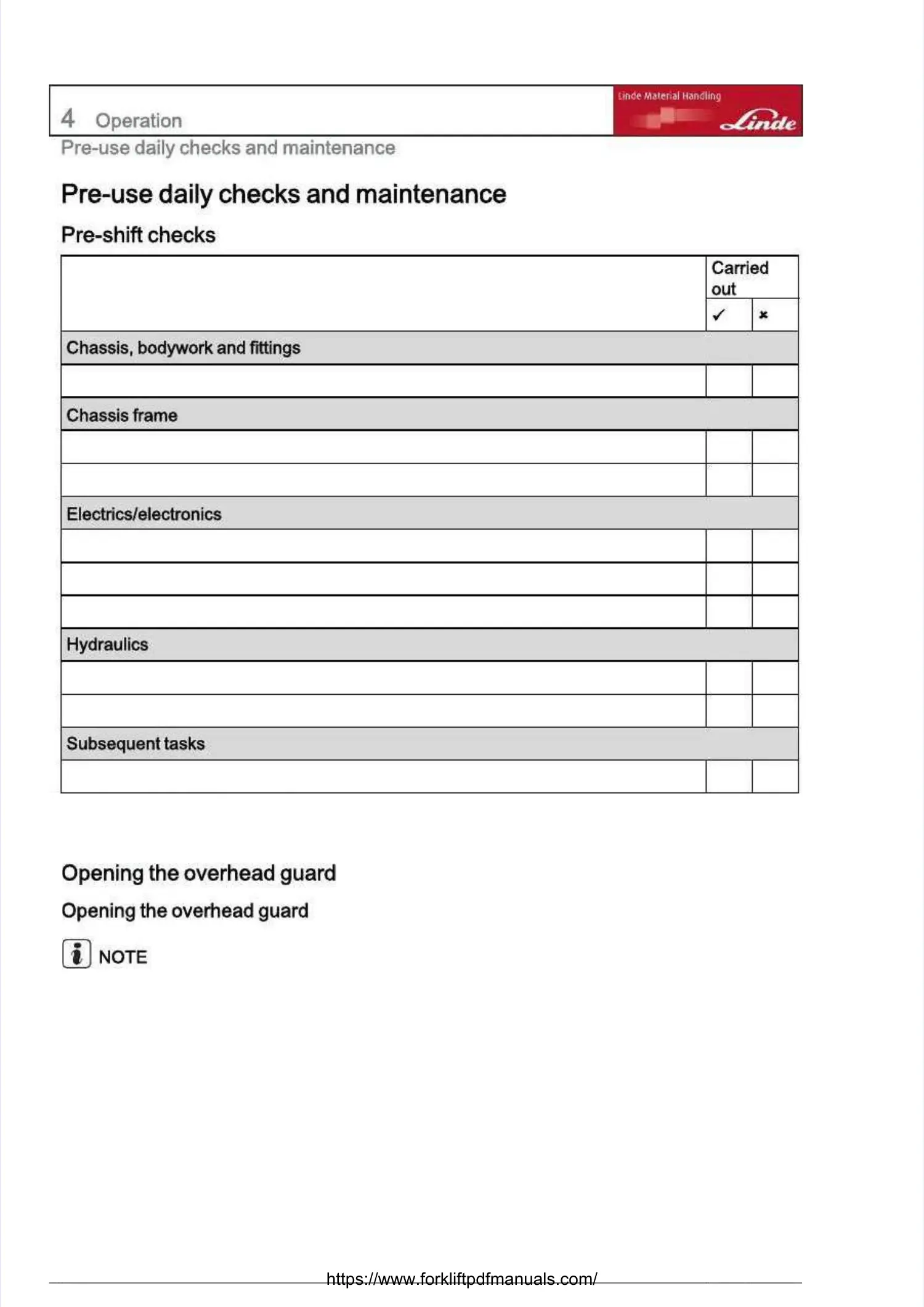 ChecCheckk elecelectritricalcal syssystemtem (e.g(e.g. . lighlightinting,g, hornhorn,, lifliftt funcfunctiotions).ns).
