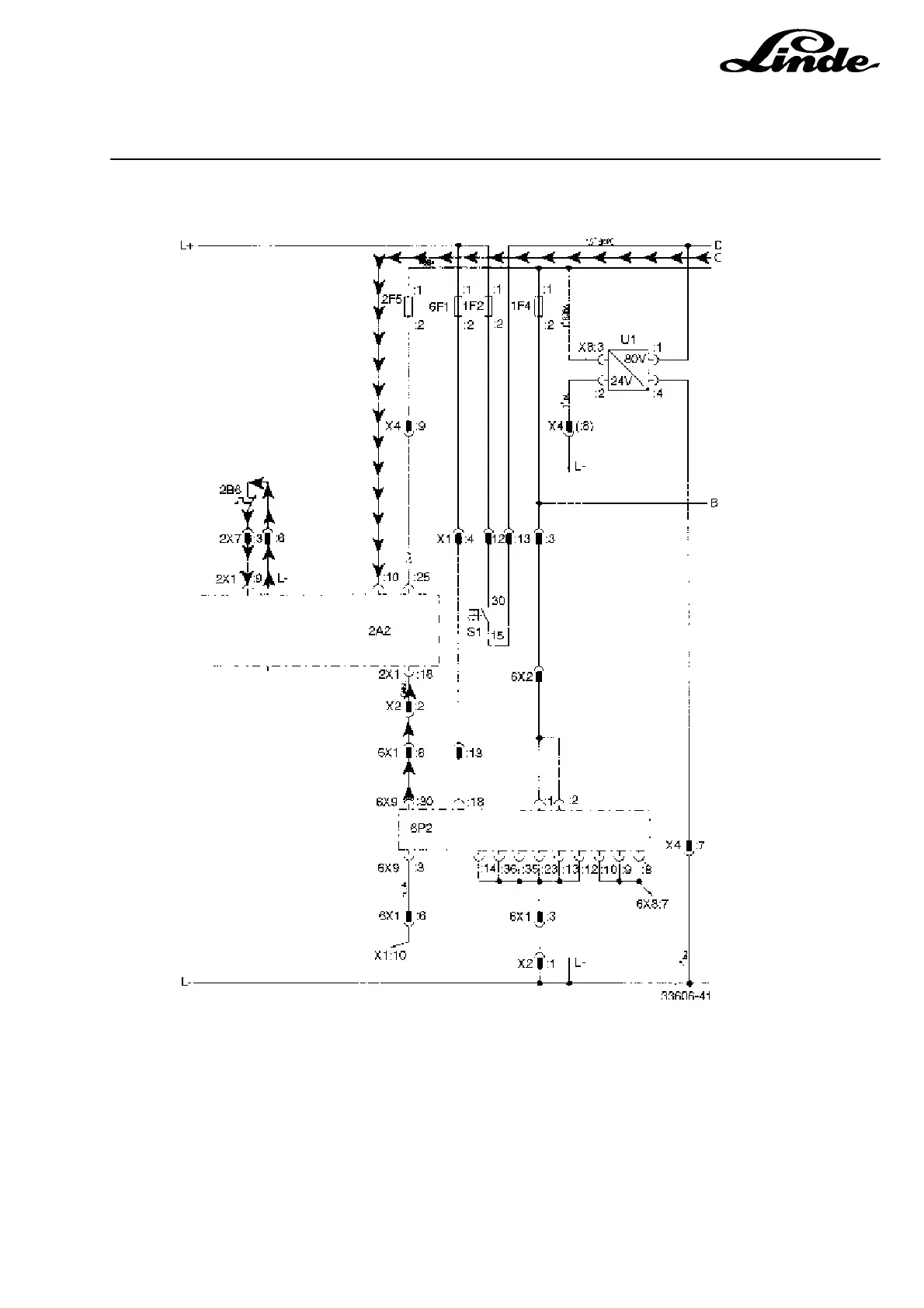 The speed of the working hydraulics is also reduced to 50 % when thermal switch 2B6 opens (breaker at
