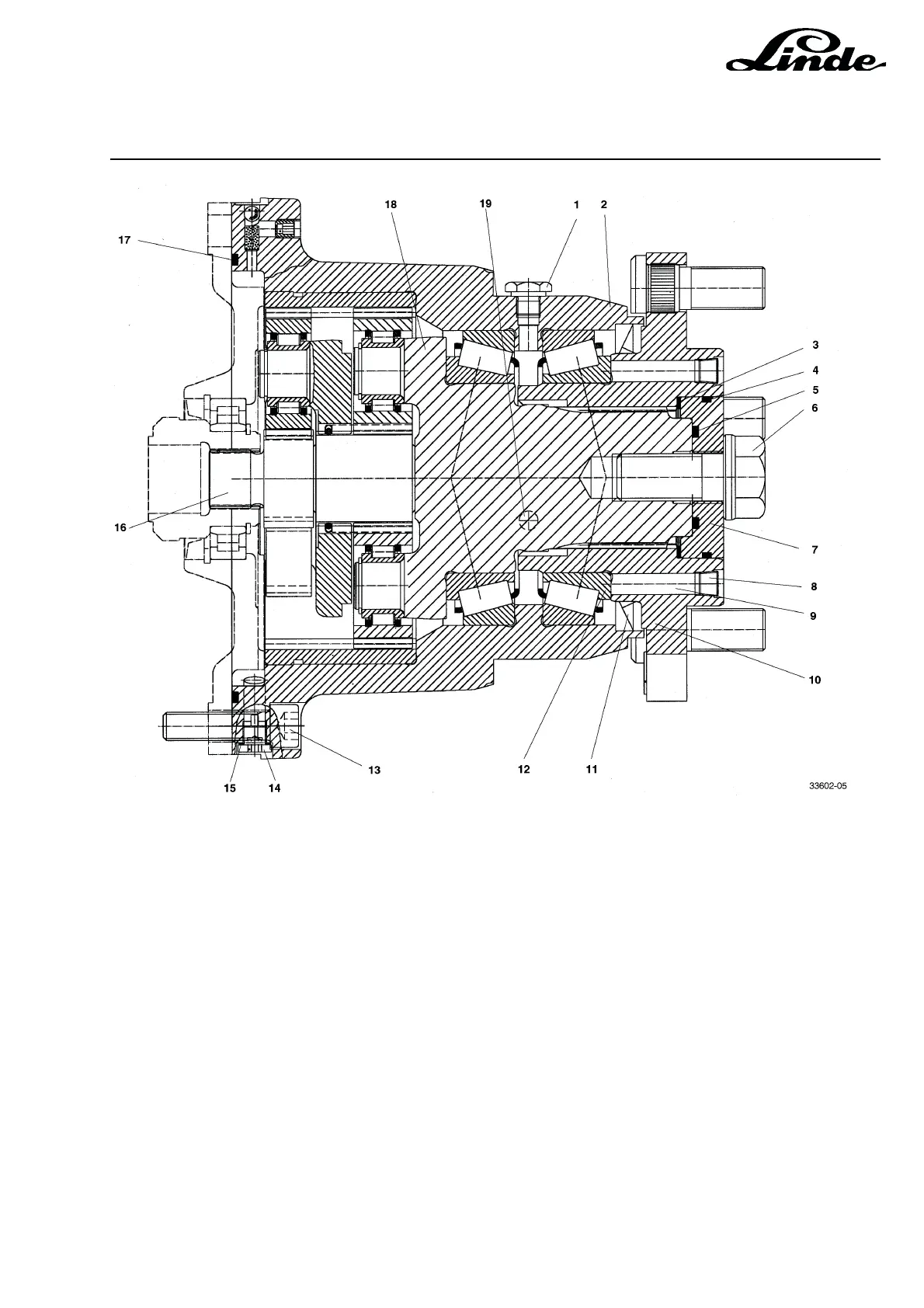 - Position the planetary hub reduction gearbox on the bearing plate with the plug (14) showing down, being