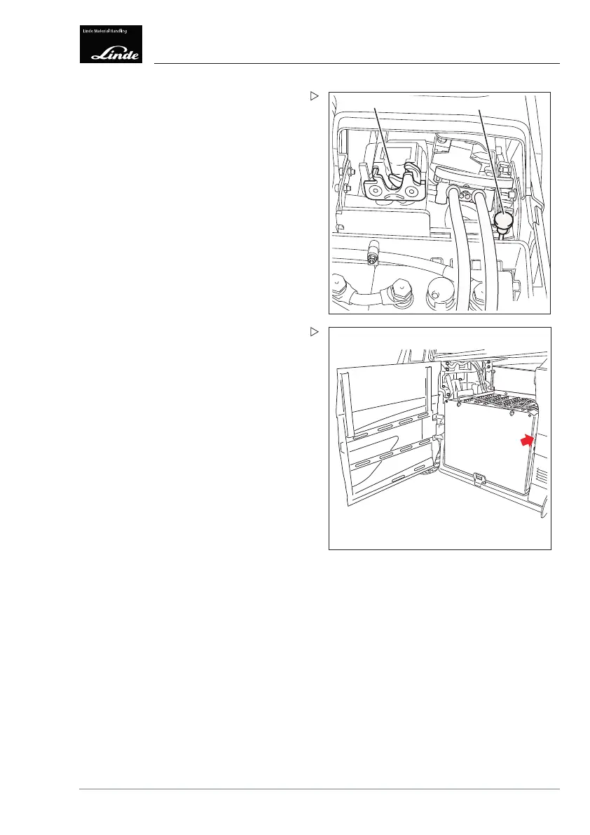 Lock (2) for the battery hood. Unlocking