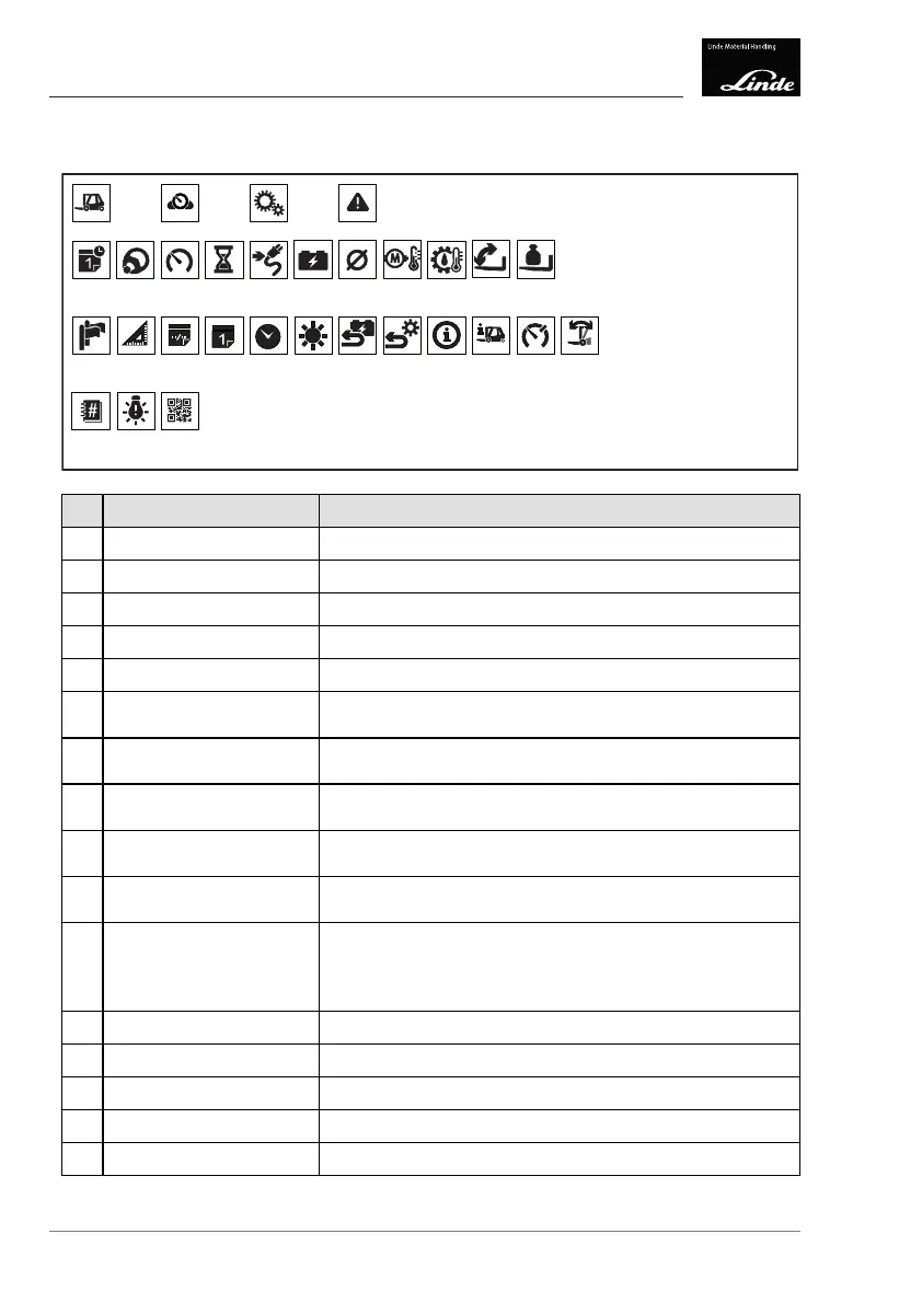 Operating hours Indicates "operating hours active" (flashing symbol when the