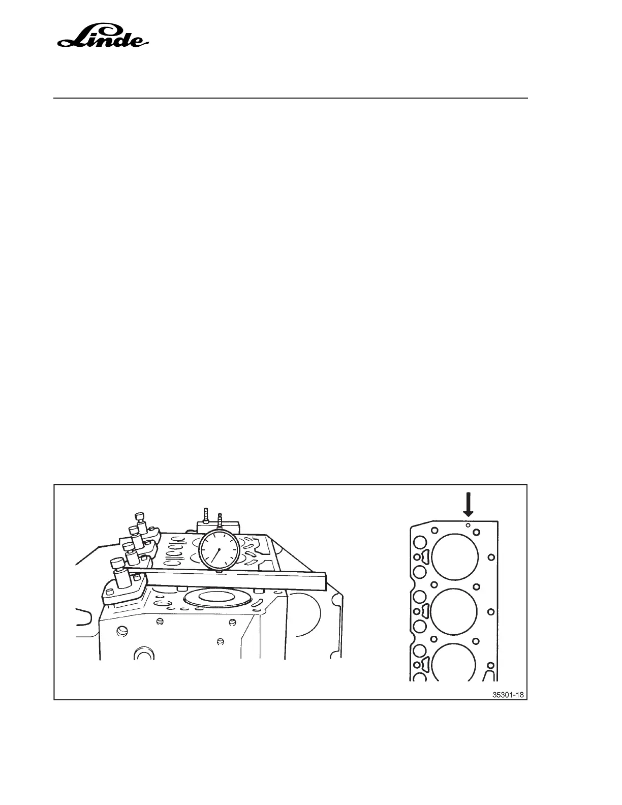 - Place the dial gauge along with spacers 10075C on the sealing surface of the cylinder block and set the