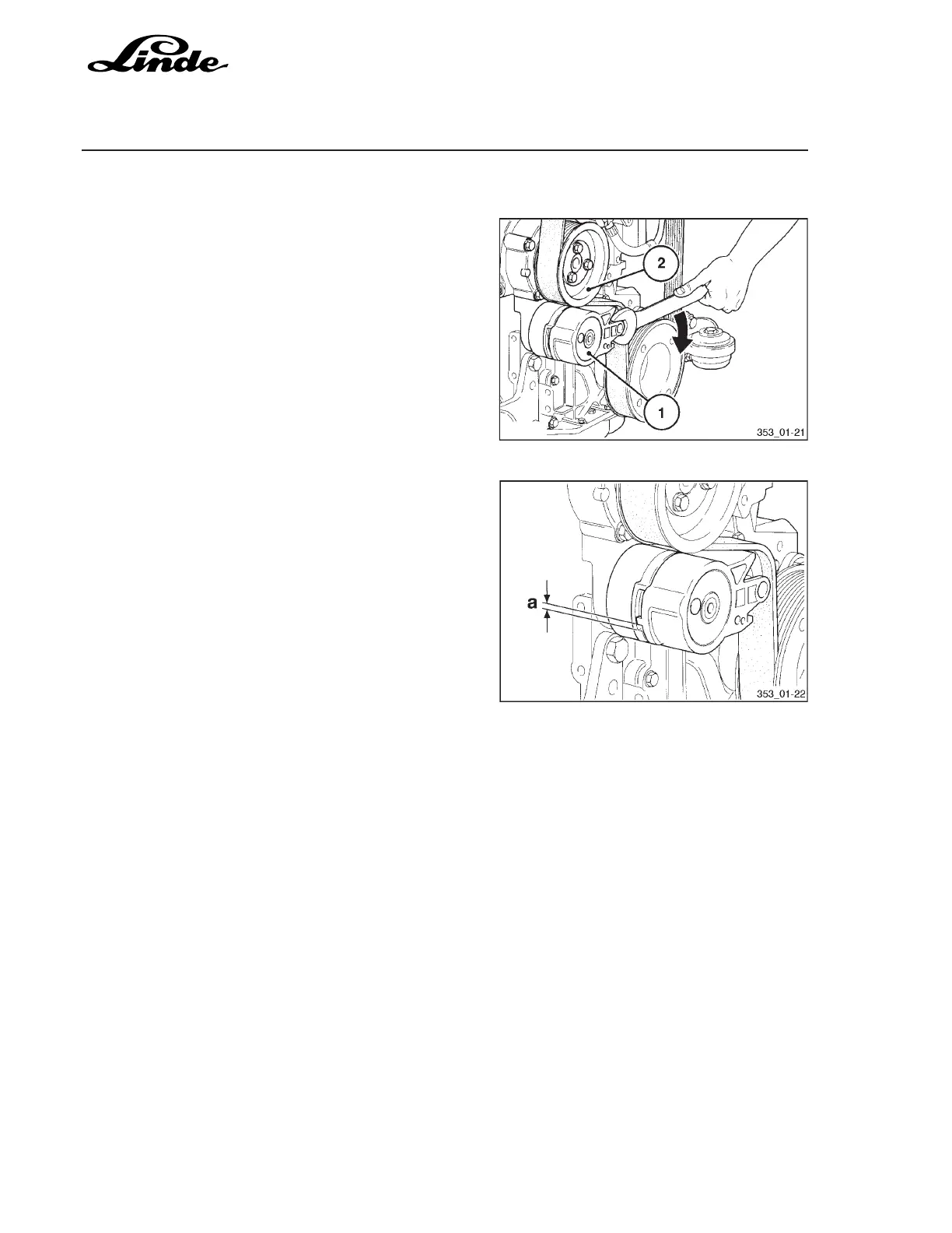 (2). Loosen the belt tensioner pulley in opposite direction