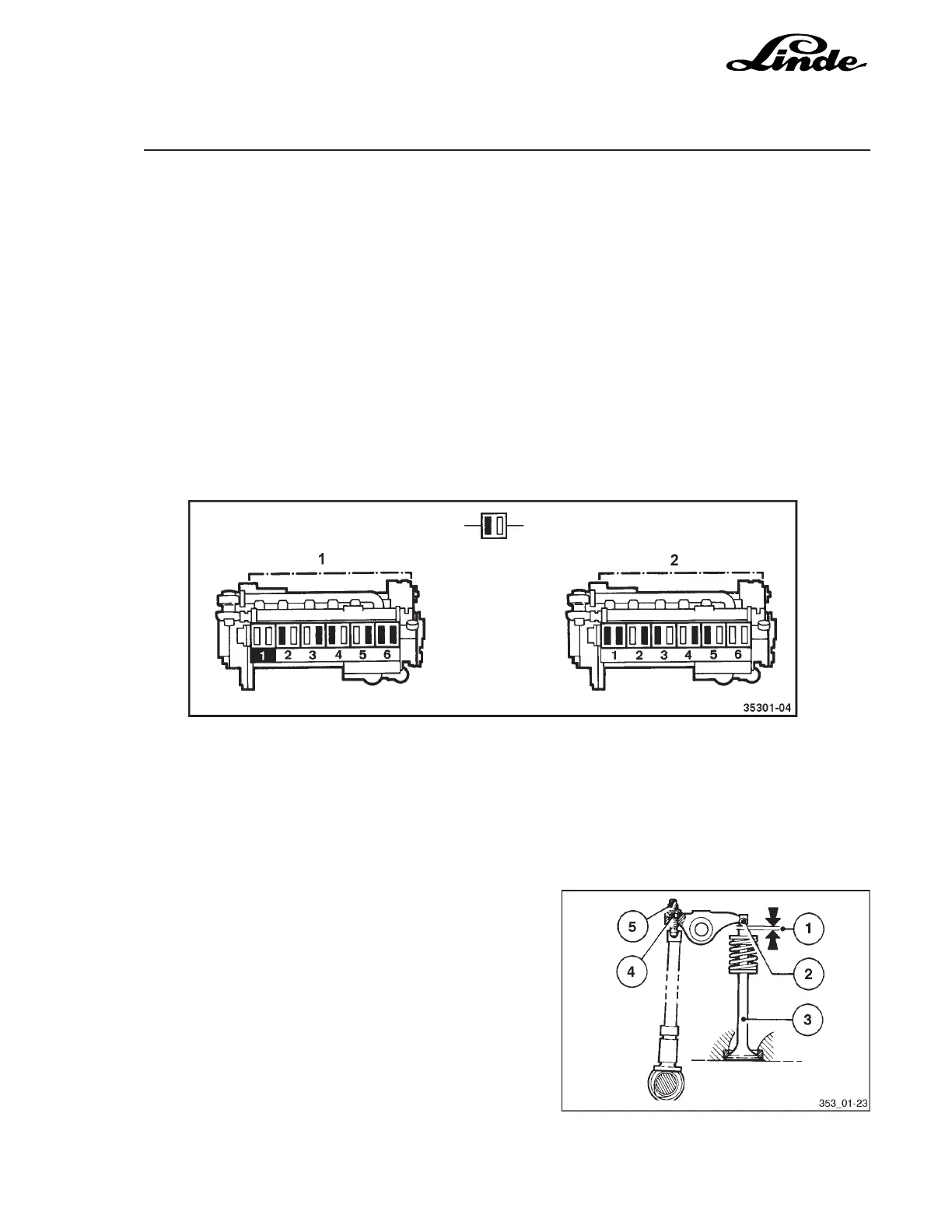 (2) and the valve (3) with feeler gauge (6) (Gauge must