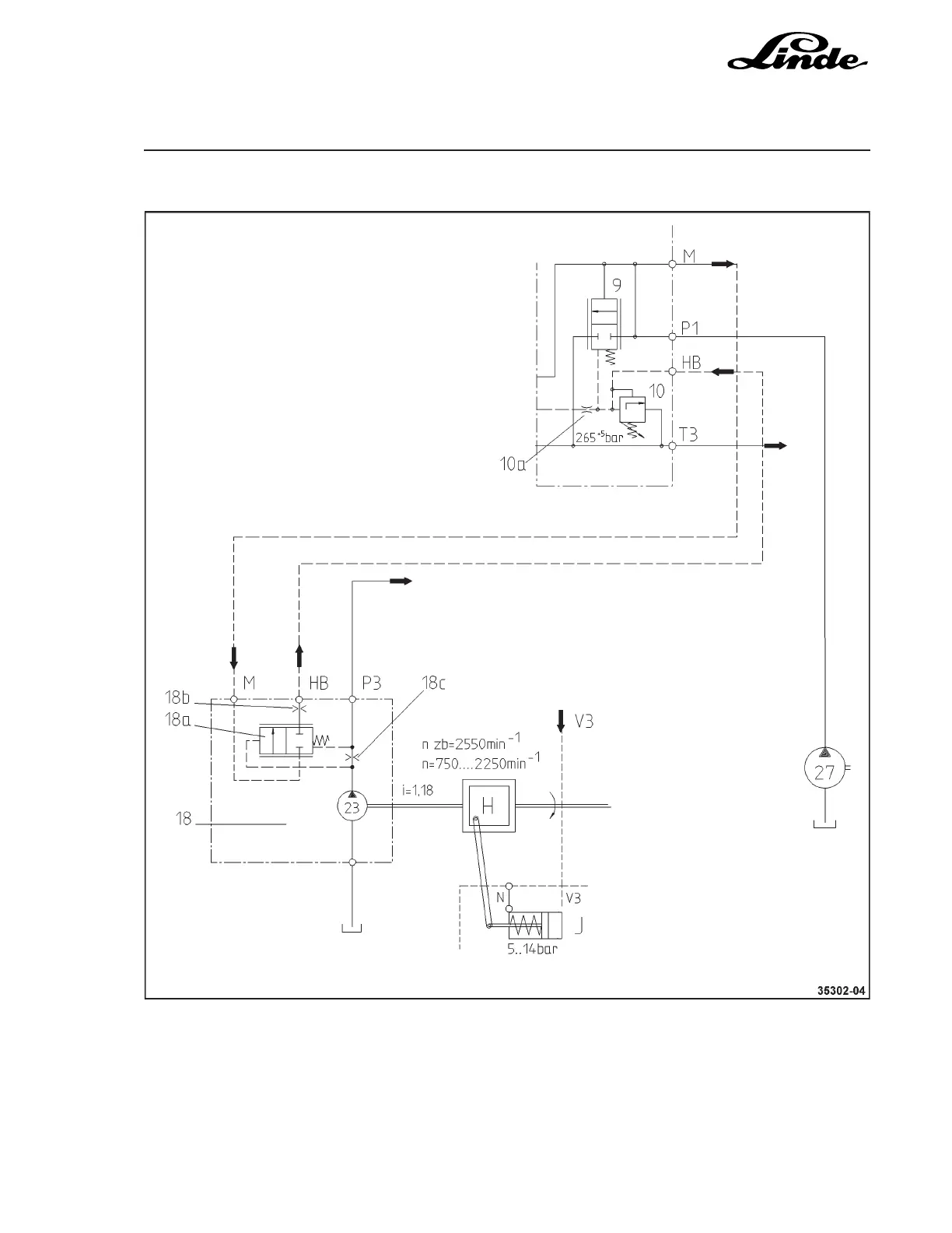 (18a) opens and sends the working pressure applied at port M through 18 b to port HB
