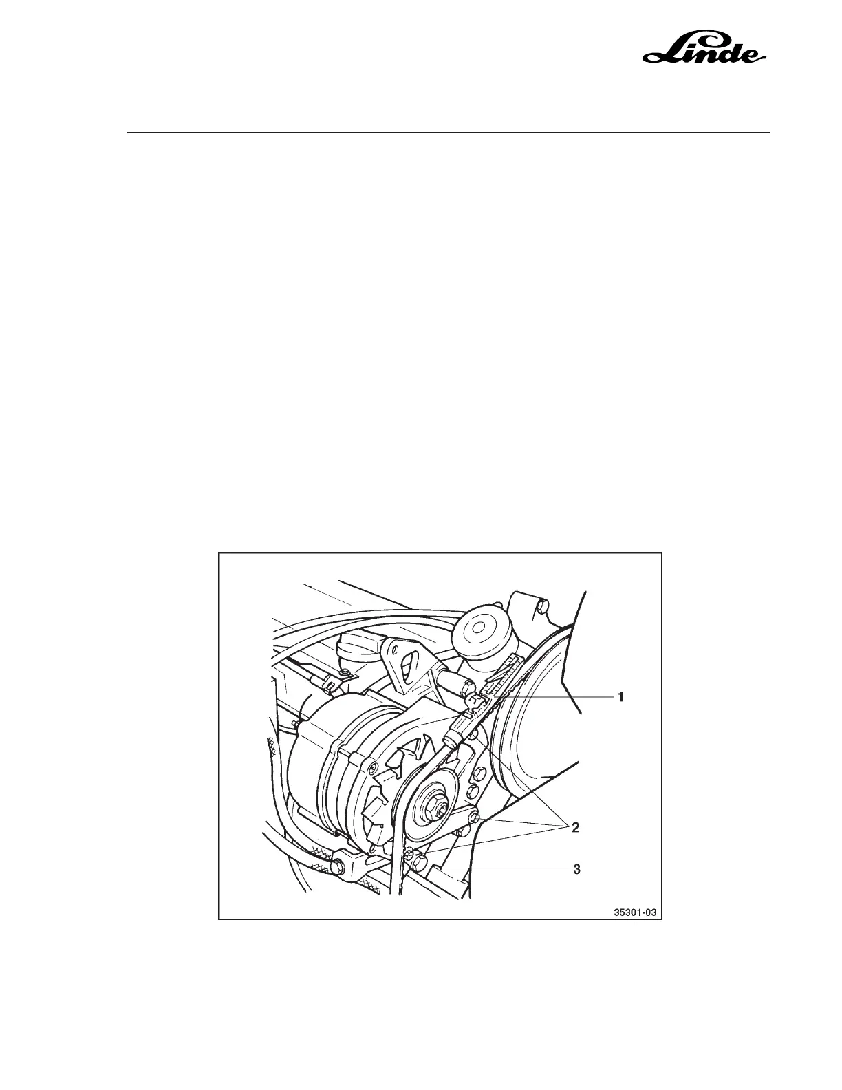- Turn the tensioning screw (3) anti-clockwise, press the alternator in and remove the drivebelt.