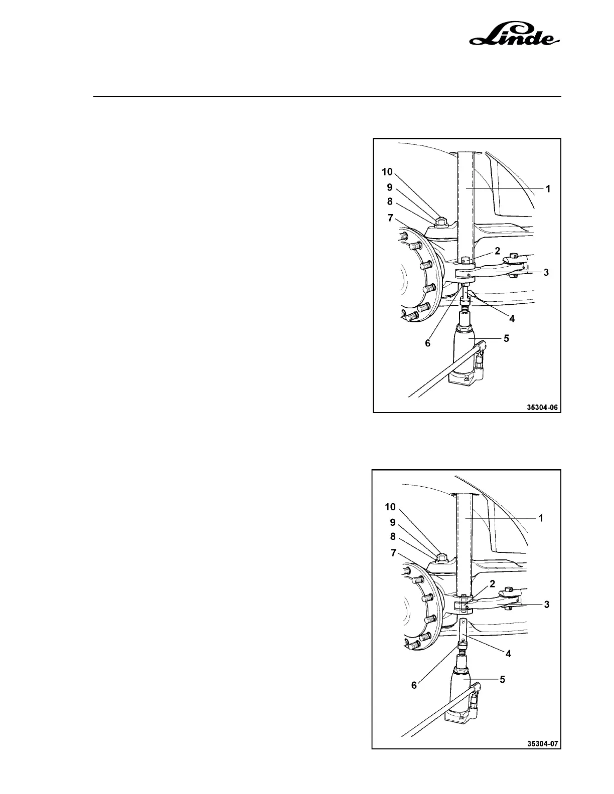 - Position the jack (5) over the king pin (10) and support