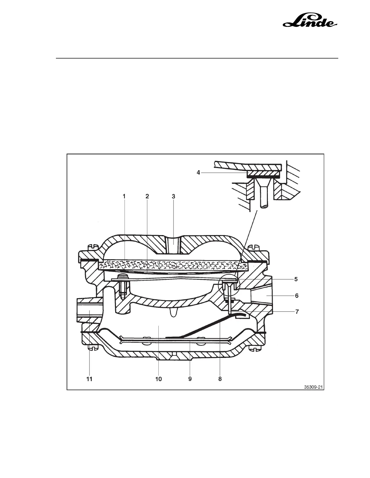(4) against the initial tension of the leaf spring (5). LPG can now flow through the filter plate (1) to the vaporisor.