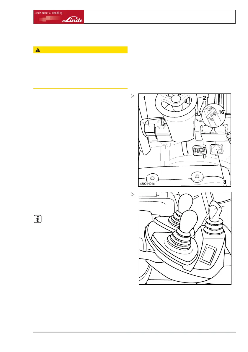 ¾ Move the direction of travel lever (4) into the