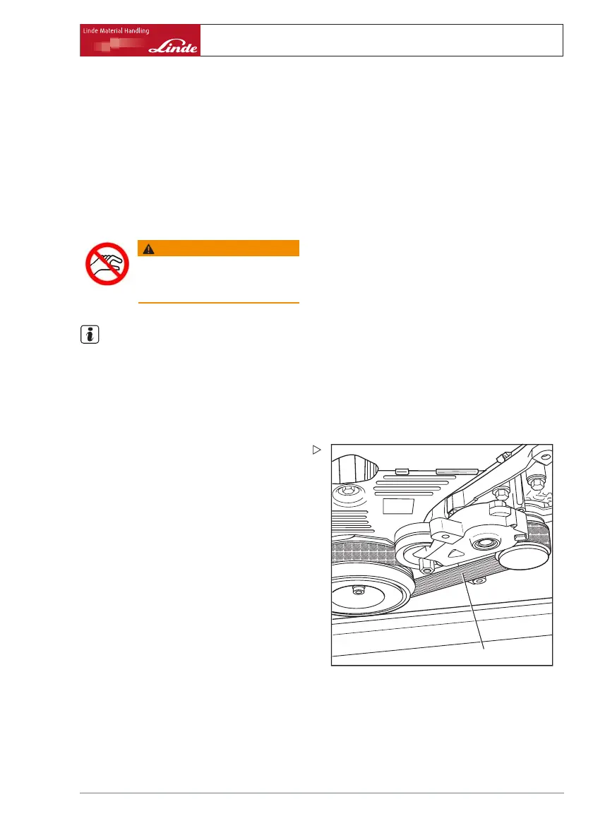 ¾ Exchange the ribbed vee belt if it is dam-