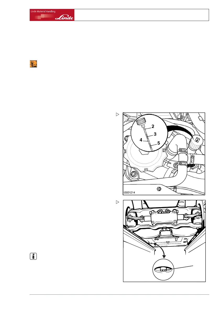 ¾ Unscrew hydraulic oil drain plug (1) on hy-