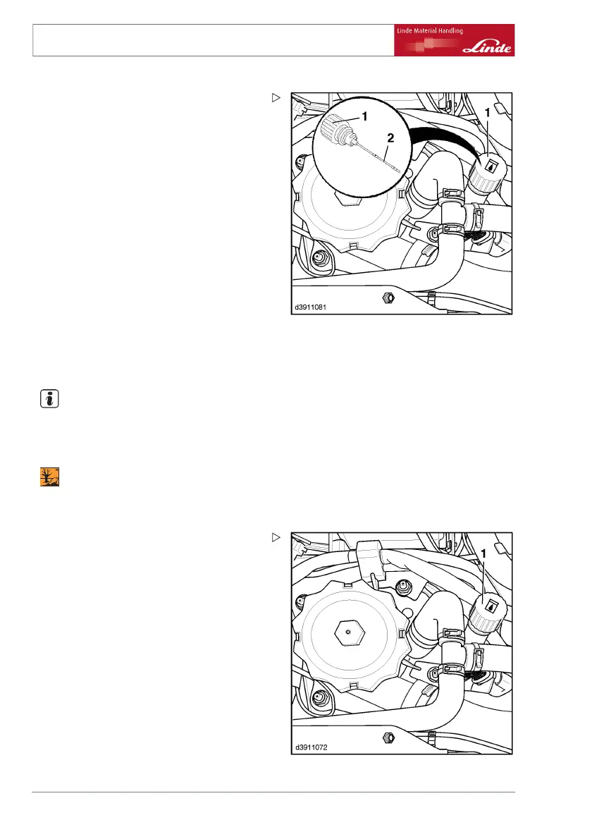 ¾ Remove the dipstick (2) from the b