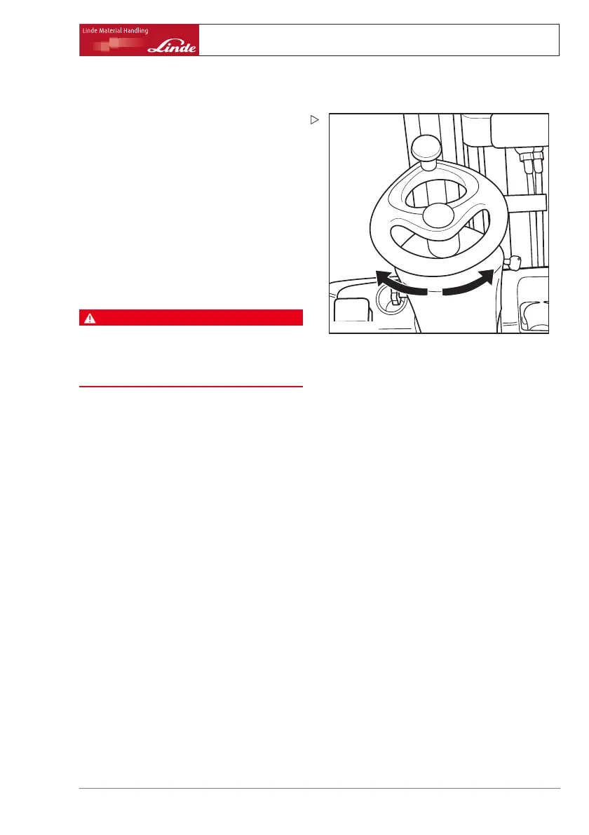The forklift truck must not be driven if the steering