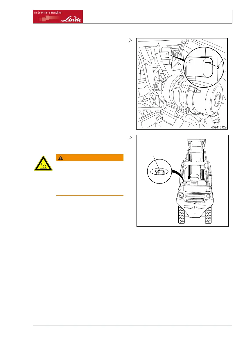 ¾ If necessary, top up the coolant. To do this,