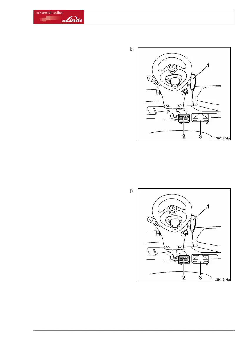 ¾ Press the stop pedal (2) all the way down.