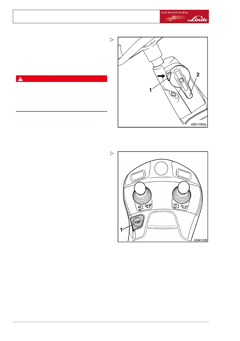 ¾ Push in the horn button (1) on the armrest