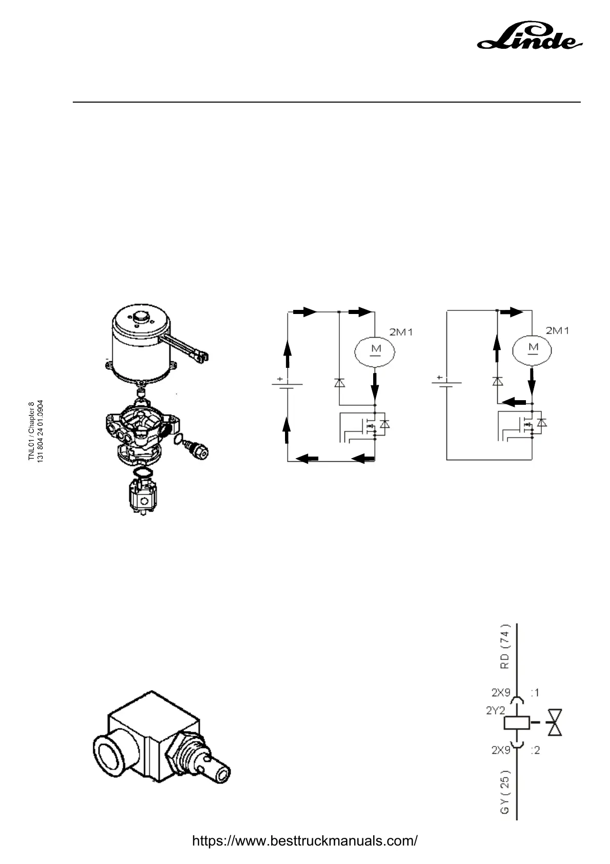 The motor pump is supplied in positive +24V by the line contactor 1K2, and in negative by the MOSFET