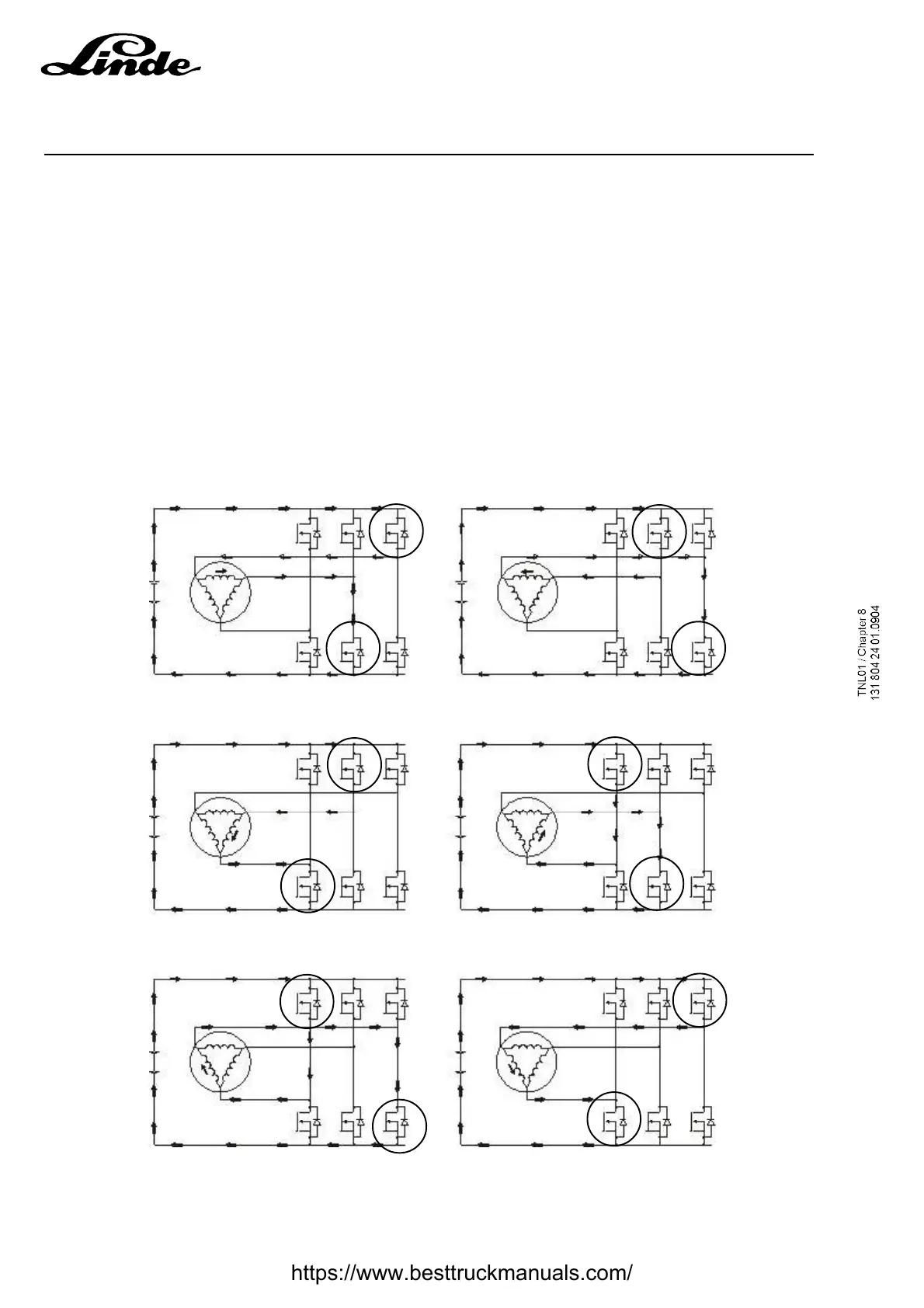 controlled by a bridge of six MOSFETS. By controlling when each of the six MOSFETS is activated or
