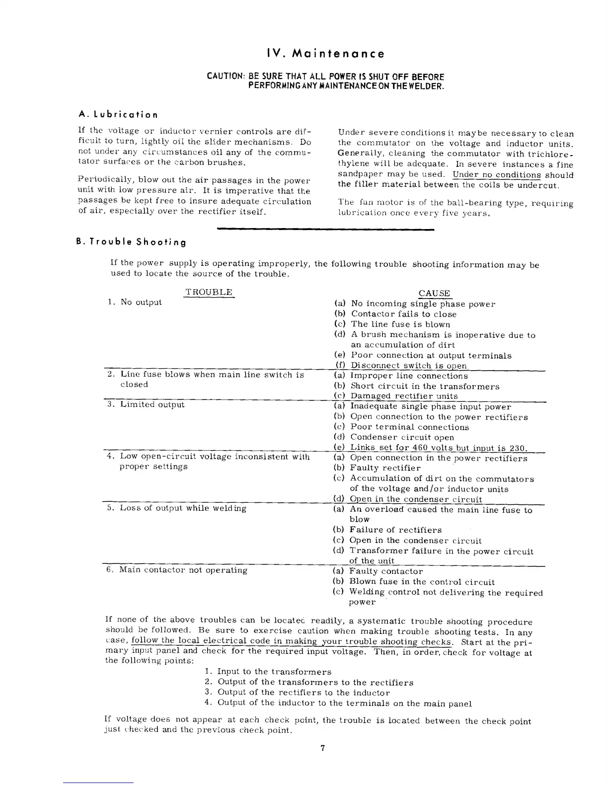 Linde VI-200 - Maintenance; Lubrication; Trouble Shooting
