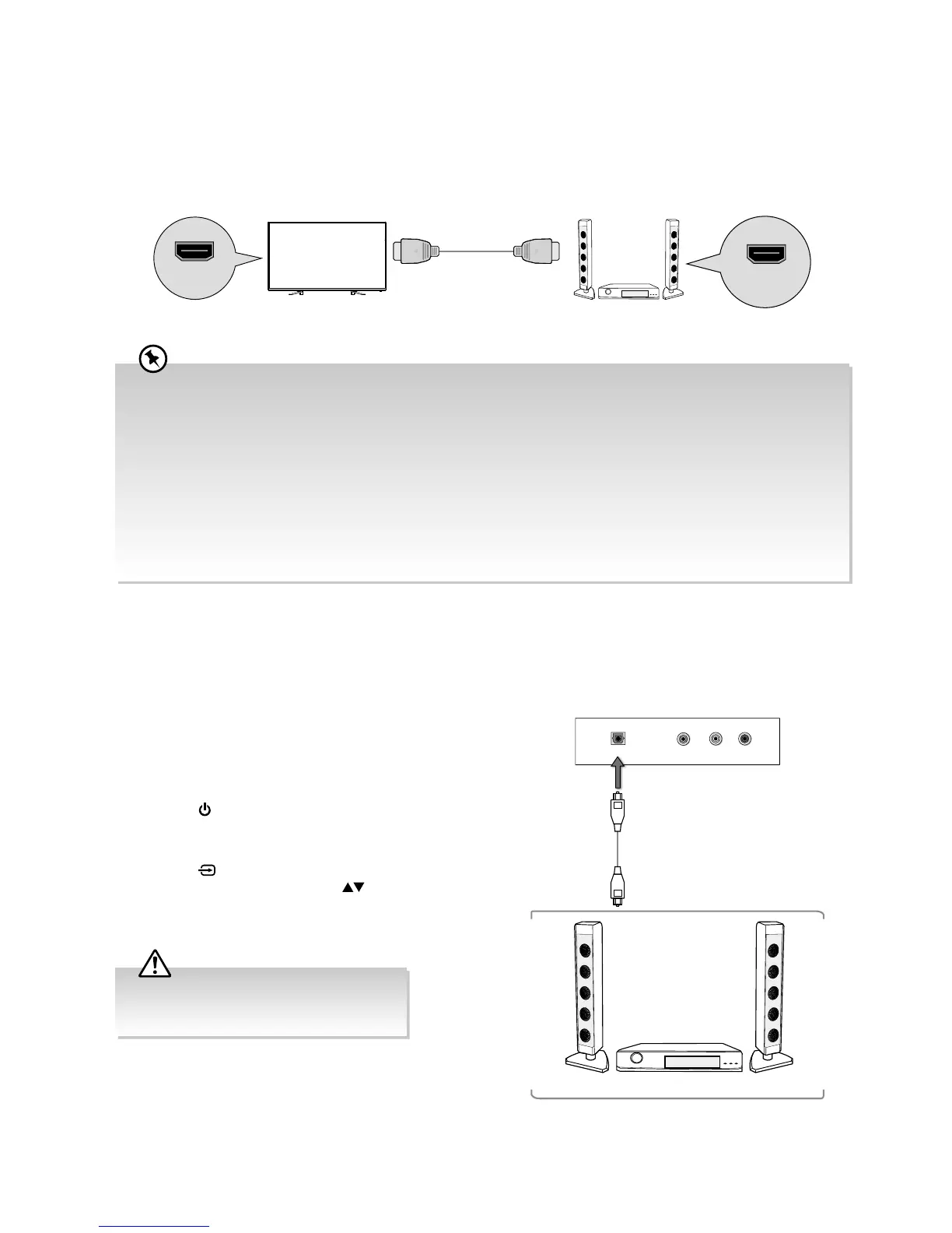 To enjoy the ARC function, please ensure your ARC-compliant audio devices are connected by an HDMI cable that support