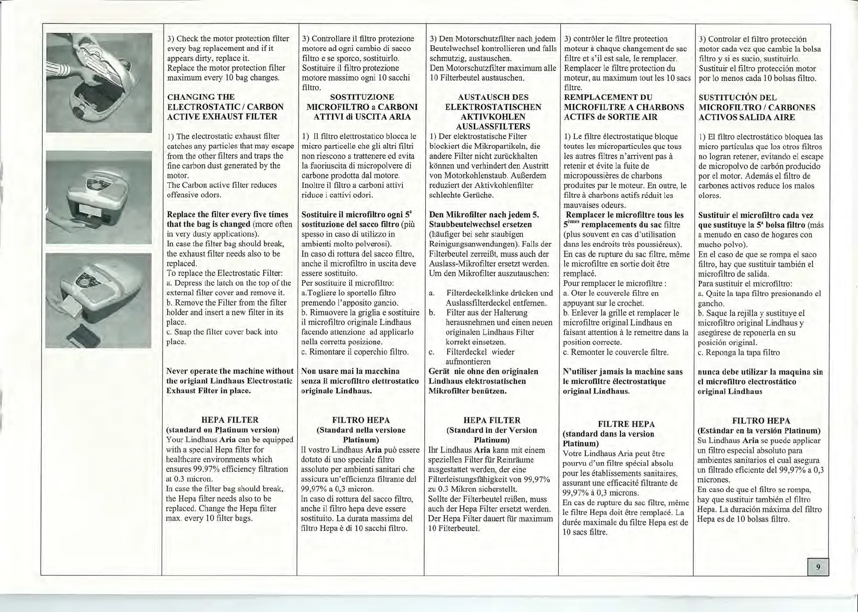Lindhaus ARIA - Filter Replacement; Exhaust Filter Replacement; HEPA Filter Replacement