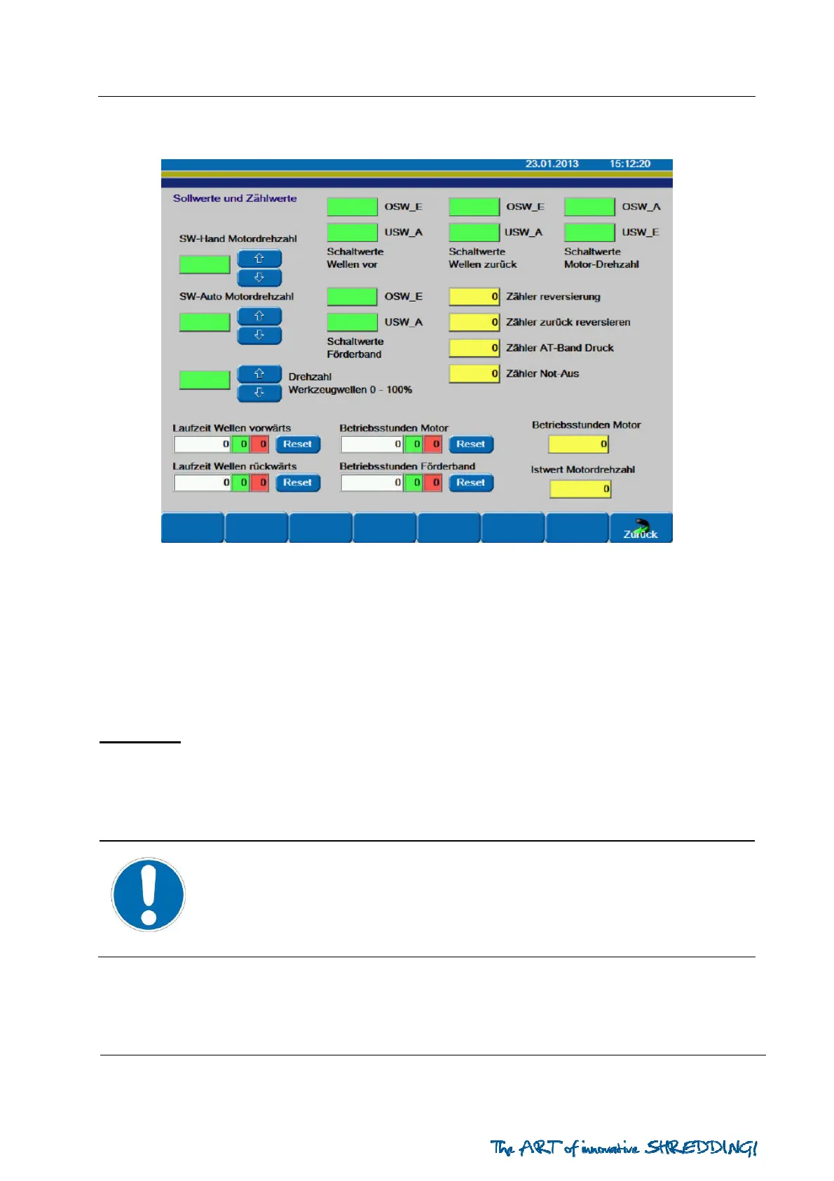 The switching values depend on the machine configuration and the material to be shredded.