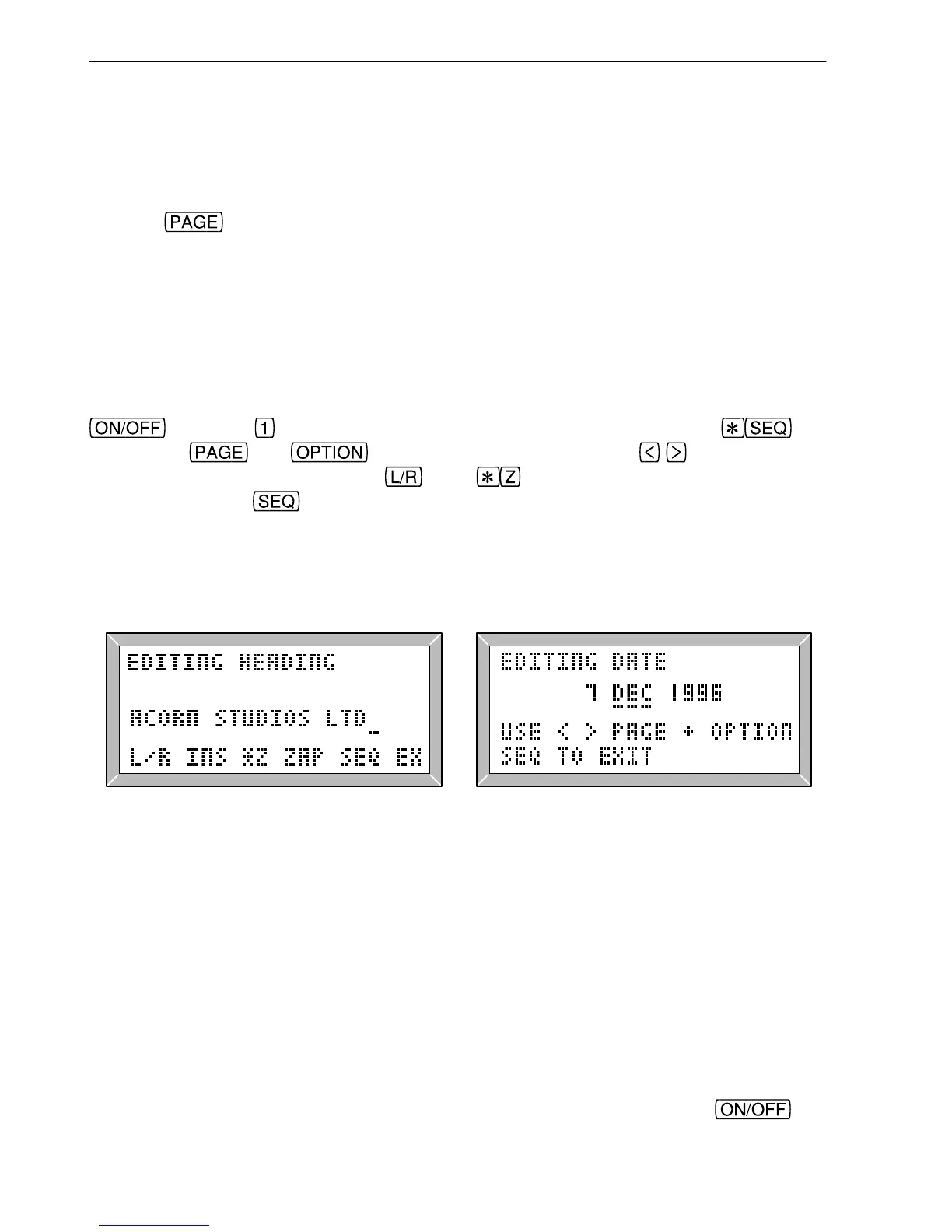 entered into the LA102 to be printed at the top of every printout (as in fig. 3.11). Hold