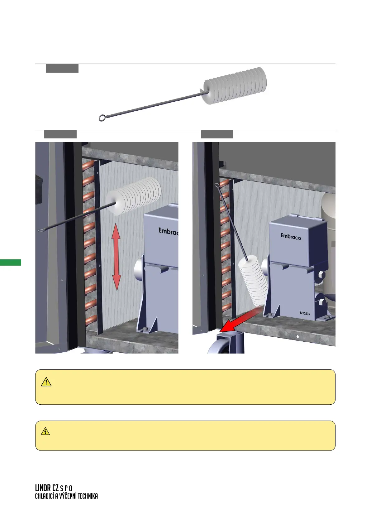 WARNING: The condenser must only be cleaned by professional personnel and at least 1x