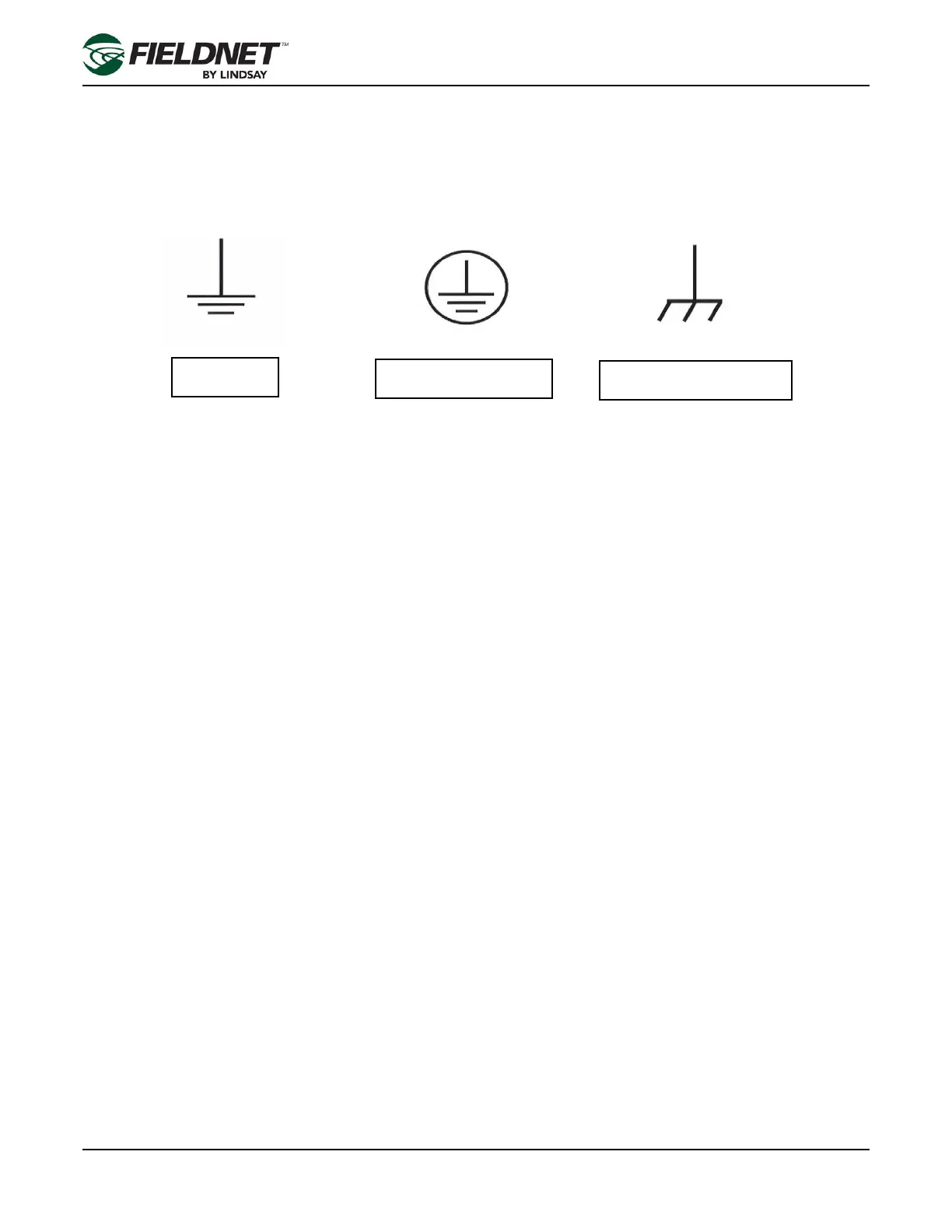 The following symbols indicate grounding connections that can be found on irrigation systems.
