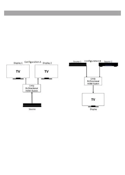 Configuration A shows one source device and two displays connected to the switch. The