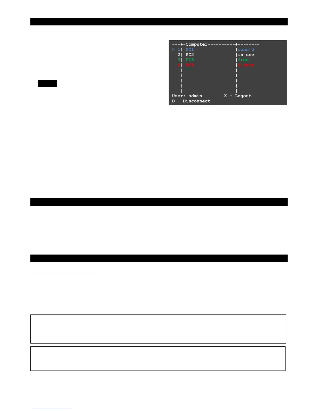 The key X logs out, the key D interrupts the recent connection to the selected computer.
