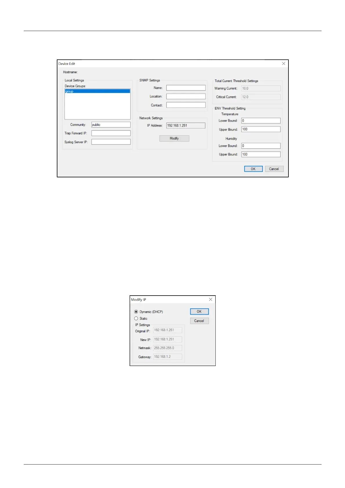 ▪ Network Settings: Re-define the IP address of the PDU.