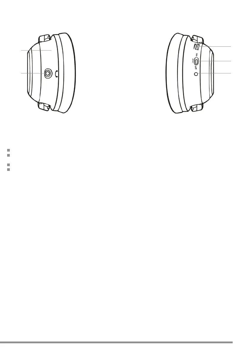 2. Nutzen Sie den On/Off-Schalter (4) um die Noise Cancelling-Funktion zu aktivieren; die Noise Cancelling-Anzeige (5)